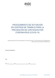 Procedimiento de actuación en los centros de trabajo para la prevención de contagios por coronavirus 20-04-2022